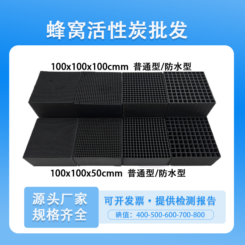 除了普通型號(hào)以及規(guī)格外還有針對(duì)用戶需要定制的特殊規(guī)格的蜂窩活性炭。要想能達(dá)到耐水性強(qiáng)的目的,巖燒處理過(guò)程也會(huì)對(duì)孔徑有調(diào)整。孔徑大風(fēng)阻一般小,大孔徑對(duì)應(yīng)高風(fēng)量廢氣處理要求。通孔阻力小也有利于吸附作用,提高了活性炭與廢氣的接觸面積。
