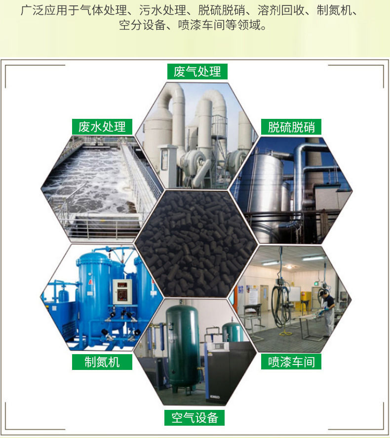 活性炭可以吸附廢水和廢氣中的金屬離子、有害氣體、有機污染物、色素等。工業上應用活性炭還要求機械強度大、耐磨性能好,它的結構力求穩定,吸附所需能量小,以有利于再生。