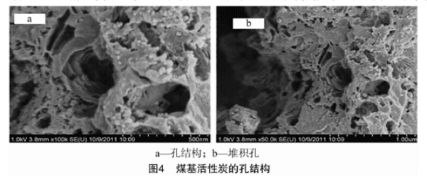 圖4為煤質(zhì)炭的電子顯微鏡掃描照片。
