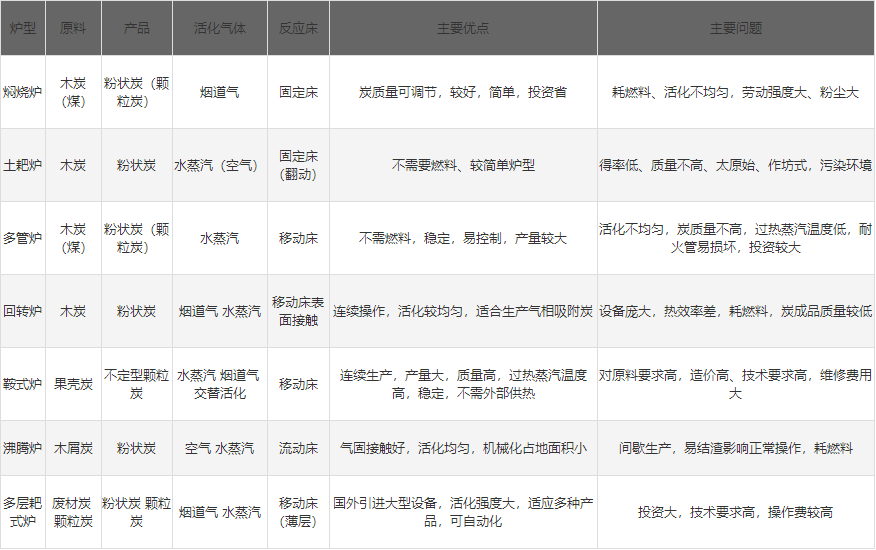 此外,還有多管沸騰爐、外溢流式沸騰爐、旋流噴動活化爐、燧道窯活化爐、斜板式活化爐、百葉窗式活化爐、機械耙動活化爐等未列入。
