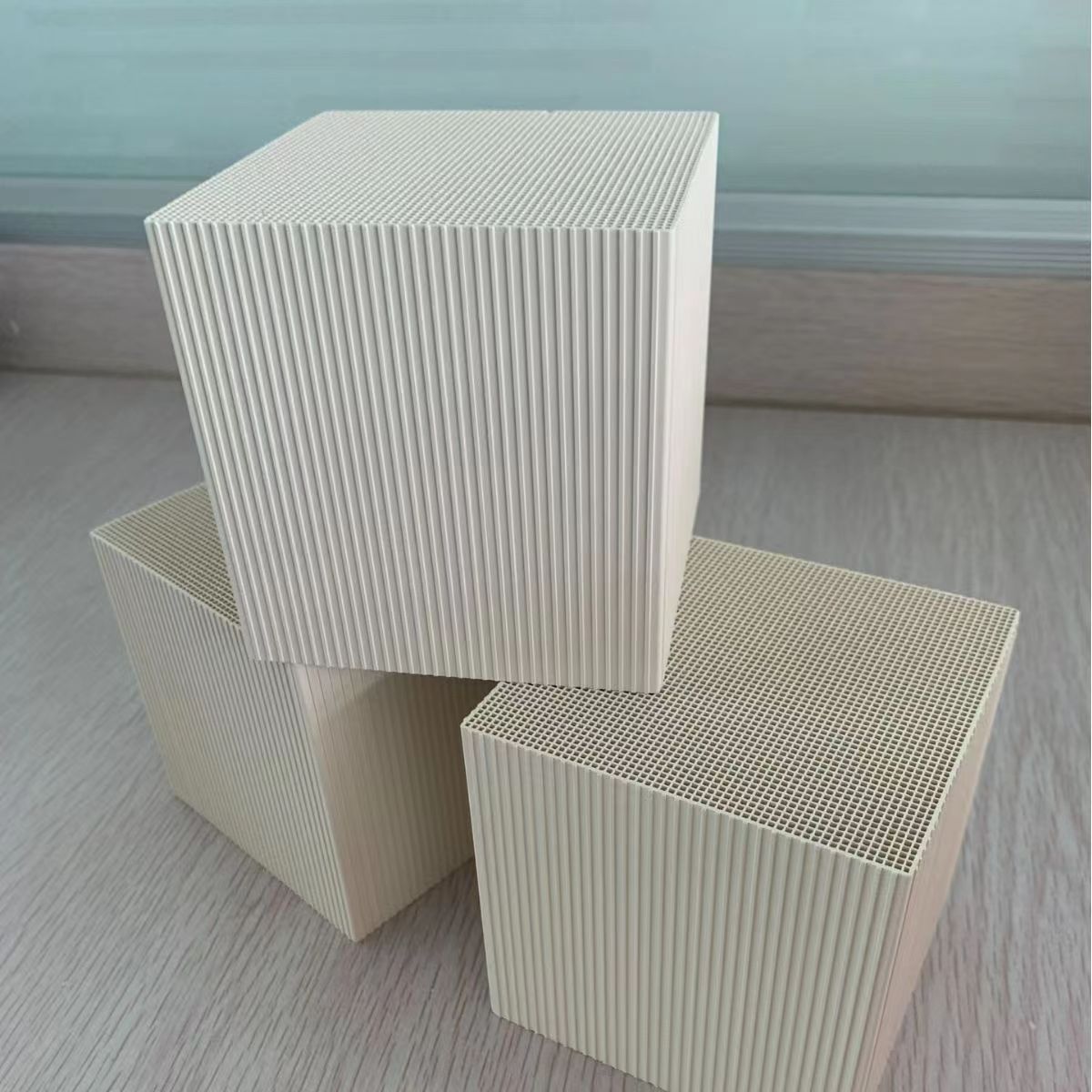 蜂窩沸石主要以疏水性分子篩粉為原料,以陶瓷纖維作骨架,加工成蜂窩塊狀的分子篩產品,該產品采用擠出成型工藝,沸石材料均勻分布在蜂窩體內外,解決了涂覆的粘結不牢、掉粉多等問題。蜂窩沸石分子篩是由硅酸鹽或鋁酸鹽等無機物質構成的,具有微孔結構的無機材料。它由四面體硅氧(SiO4)和四面體鋁氧(AlO4)組成的三維骨架結構,在骨架結構中存在著一些孔道。硅氧四面體和鋁氧四面體通過共價鍵相連形成一個高度穩定的三維網格結構,并且這個結構中還存在著一些空隙和孔道。這些空隙和孔道的大小和形狀可以通過控制硅氧四面體和鋁氧四面體的比例和排列方式來調整。除了硅酸鹽和鋁酸鹽之外,蜂窩沸石分子篩還可以采用其他物質合成,例如采用模板法或自組裝法等方法,通過有機分子與無機離子的相互作用來制備具有規則孔道的材料。沸石蜂窩陶瓷主要成分是以硅鋁酸鹽和耐酸粘合劑混合壓制,內微孔形成10A孔徑即為X型晶體結構的鈉X型蜂窩分子篩,具備吸附臨界直徑小于10A的篩分分子。